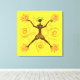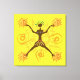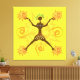 Diseño primitivo africano con decoración de bailes y formas de sol sobre fondo amarillo