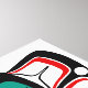 Eagle, uno de los animales más importantes en arte y mitología de la cultura nativa de la costa noroeste. Obra de arte de formline típica de obras de arte tribal de Chinook, Haida, Klingit, Tlingit, Lummi, Nooksack, Salish, de Washington, Alaska, Columbia Británica. Es ampliamente respetada por su poder, inteligencia y visión. El espíritu del Águila está asociado con la búsqueda de la libertad. El arte está en la tradición del diseño de formline de la costa noroeste del Pacífico.