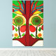 Este diseño de inspiración africana sería una gran manera de traer la belleza de África a su hogar. Los colores vivos de verde, amarillo y rojo en forma de árbol y flores sobre fondo neutro le dan un toque vibrante a cualquier habitación. ¡Esta pieza única es un buen comienzo de conversación cuando sus invitados vienen! Excelente diseño para ser el punto fuerte de la habitación.