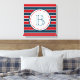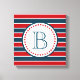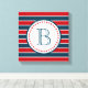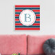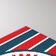 Diseño de temática náutica con decoración monográfica en forma redondeada con estrellas de fondo rayado azul, rojo y blanco