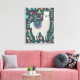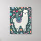 Imagen de Alena Gridushko | Shutterstock. ID de la imagen: 1236048322 | Este diseño con dibujos a mano tiene una llama tierna y flores coloridas sobre un fondo verde azulado.