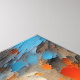 A highly detailed and vibrant portrayal of a Rottweiler is depicted with its tongue lolling out and a pleasant expression on its face. The background is an abstract blend of warm and cool tones, complementing the black and tan coloring of the Rottweiler.