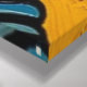 This vibrant artwork presents a captivating close-up of a dog's face, framed within the clear visor of an astronaut's helmet. Rendered with bold, textured strokes in a dynamic palette of oranges, blues, and reds, the canine's expressive gaze meets the viewer. The background unfolds into a stylized cosmic expanse, featuring distant planets and scattered nebulae-like formations, all rendered with a tactile, almost impasto effect. The intricate detailing of the fur and helmet contrasts with the energetic, abstract elements of the surrounding space, creating a striking visual narrative.