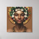 Hermosa mujer afroamericana fuerte con una corona de flores. La IA generó obras de arte.