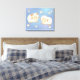 Lienzo Dos pequeñas ovejas cortas orinan en azul