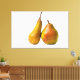 Dos frutos de pera de diferentes formas aislados en un fondo blanco. Estos frutos se parecen a figuras masculinas y femeninas, inclinadas unas a otras.