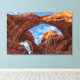 Lower view of the Double Arches against blue sky at Arches National Park, Utah.