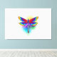 Luminosa, arco iris, libélula poligonal sobre fondo blanco, pintada con acuarela.