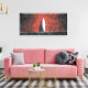 A chilling and atmospheric piece of dramatic canvas art perfect for long, horizontal wall spaces. The composition features a solitary white, draped figure (like a ghost or apparition) standing directly against a bold red brick wall. Dark, painterly shadows and moody textures enhance the cinematic, haunting aesthetic. This unique piece of horror or dark surrealism is ideal for bedrooms, gaming rooms, or any space needing a dark, narrative-driven focal point.