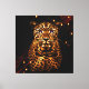 Eclipse Majesty, exhibe un leopardo con piel dorada brillante y puntos distintivos, ambientados en un fondo oscuro. Los ojos del leopardo están iluminados con un color violeta brillante, lo que crea un efecto místico y sorprendente. El entorno oscuro se ve acentuado por unas luces dispersas y cálidas que le confieren al lugar una atmósfera dramática casi de otro mundo.