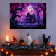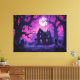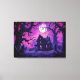 Bajo un atolondrado cielo violeta, la luna llena ilumina una casa victoriana en decadencia, con sus ventanas iluminadas con una luz púrpura de otro mundo. Los árboles enredados se ciernen sobre sus cabezas, sus ramas esqueléticas goteando con sombra, mientras que las lápidas inclinadas dan a entender la sombría historia de la casa. La espeluznante paleta de colores transforma la escena en una pesadilla surrealista, perfecta para los amantes del horror gótico, los escalofríos de Halloween y el arte de fantasía oscura. Esta pieza irradia belleza y terror, convirtiéndolo en una declaración impactante para cualquier pared.