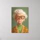 Retrato de una extraña y graciosa abuela con gafas y pelo rizado gris