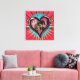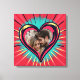Arte mural El día de San Valentín personalizado, con arte pop retro de corazón rojo, azul y amarillo. El corazón tiene un estilo gótico de tatuajes en la parte trasera. Puede agregar su foto favorita y sus nombres en el área de personalización.