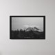 Fotografía en blanco y negro del Monte Rainier. En primer plano hay hileras de árboles, y en la base de Rainier hay colinas. El volcán cubierto de nieve tiene una gran nube de formas interesantes detrás. Para algunos parece una representación antigua de un barco espacial, para otros es una forma humana. ¿Cómo se ve la nube para ti? Derechos reservados ©2023 Kimberly J Tilley. zazzle.com/store/developingnature