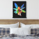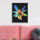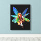 Un joven hada con alas azules y intrincadas sostiene un instrumento musical de cuerdas que combina elementos de fantasía y música. Lleva puesto un equipo vibrante con una banda decorativa para la cabeza, creando un aspecto caprichoso y encantador.