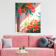 Un ilustracion botánico vibrante y sereno con plantas tropicales exuberantes y hojas de naranja rojo bañadas por la cálida luz del sol. Las sombras suaves y el fondo moderno de la entrada crean un ambiente tranquilo y veraniego. Perfecto para los amantes del arte de inspiración natural, diseño tropical minimalista y decoración hogareña y acogedora.