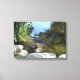 Un pequeño mapache curioso buscando algo para cenar en el arroyo. Una gran vista panorámica.