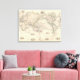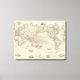 El mundo de la proyección de Mercator en color de contorno con algunas masas de tierra a todo color. Rodeado de dibujos de ciudades y lugares de interés como las pirámides de las cataratas de Giza y Niagara. Las Colonias Británicas se destacan en las rutas rojas y de vapor hacia las Colonias en azul.