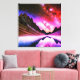 La cultura de ciencia ficción inspiró una noche de aspecto abstracto con espacio colorido, montañas y superficie acuática del lago. Enriquecer el ambiente de cualquier habitación en casa u oficina.
