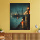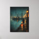 Una figura solitaria camina a lo largo de un muelle iluminado con farolillos, lanzando reflexiones doradas sobre aguas tranquilas. Grandes barcos descansan en silencio mientras luciérnagas y niebla marina se mezclan en una noche de ensueño. Una visión atemporal de anhelo, misterio y despedida suave.