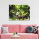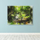 Un viejo puente de madera desvencijado en un bosque verde en acuarela