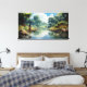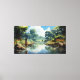 Un río brillante rodeado de rocas y flores silvestres serpentea por un bosque verde. Un joven chica se para en el agua, mirando el lugar donde desaparece el río alrededor de la curva. ¿Está reflexionando sobre el mundo más allá? ¿Sueña con seguir el río hasta su final? Tal vez nunca lo sepamos.