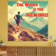 Como corredor, sabes que los resultados de la carrera o las relaciones públicas no son la recompensa. La recompensa está en el entrenamiento, en el trabajo. Este diseño está en el estilo de un afiche de viaje retro vintage.