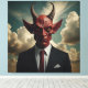 En un mundo donde lo inesperado a menudo se mezcla con lo ordinario, esta obra de arte presenta una visión única de la figura clásica del diablo. Vestido con un traje afilado, este diablo desafía nuestras nociones preconcebidas del bien y el mal. La yuxtaposición de su siniestra apariencia con la elegancia de su atuendo sugiere una narrativa más profunda —tal vez que el mal puede usar la máscara de la sofisticación, o que incluso los seres más temidos están obligados por las mismas normas sociales que el resto de nosotros. Las nubes de fondo añaden un contraste celeste, insinuando la eterna lucha entre el cielo y el infierno, luz y oscuridad.