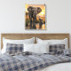 Una madre elefante se levanta en un sereno agujero de agua mientras un juguetón elefante bebé salta a relucir cerca, todo contra una impresionante puesta de sol