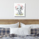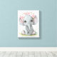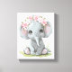 Adorable y lindo elefante bebé con flores rosas en la cabeza, arte en lienzo de acuarela para la habitación de tus pequeños. Disponible en muchas medidas.