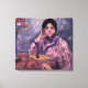 Este diseño presenta una pintura del artista impresionista japonés Fujishima Takeji (1867-1943). Muestra a una elegante dama asiática usando un kimono tradicional que es principalmente rosa y morado con un patrón negro. Ella descansa sobre una mesa en la que se coloca una pequeña botella de perfume. También hay un jarrón de rosas rosas rosas sobre la mesa. Es una imagen de lujo y elegancia moderada.