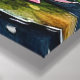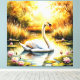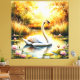 Escena de agua serena con un cisne blanco sobre un estanque de lirios, rodeado de follaje otoñal. Esta relajante composición natural muestra los vivos colores estacionales y refleja la paz y la armonía.