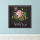 Lienzo Elegante patrón de bordado floral fondo negro
