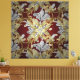Elegante estampado floral de colores neutros con elementos dorados sobre fondo rojo