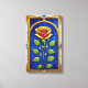 Lienzo Elegante Ventana De Vidrio Manchado Con Rosa Dorad