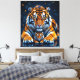 Ein majestätischer Tiger in leuchtenden Neon-Orange- und Blautönen auf schwarzem Hintergrund. Dieses Bild vereint natürliche Stärke mit einem futuristischen Glühen, das die wilde Kraft und Eleganz des Tigers eindrucksvoll einfängt. Perfekt für moderne Kunstliebhaber, die das Ursprüngliche und das Außergewöhnliche schätzen.