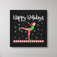 Gimnasia femenina - Feliz arte de copos de nieve navideños con elfre de gimnasta femenina en un sombrero de Papá Noel haciendo una escala en un rayo de caramelo rojo. > Idea acertada para entrenador de gimnasia, profesor o entrenador para celebrar la temporada navideña. > ¡Personalízalo! Agregar nombre, foto o texto personalizado.