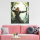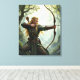 Este arte de lienzo presenta a un arquero elfo dinámico en un bosque místico, del artista digital Jayne Wilson.