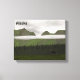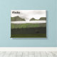 Una pintura "primitiva" o de estilo folclórico de coníferas verdes y montañas en un día muy gris con nubes colgantes bajas. Un alce de toro (Alces alces) en primer plano da escala a la escena. También aparece el texto de personalizable "Alaska".
