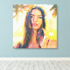 Retrato de Emily . Una puesta de sol con tonos cálidos en un paisaje de ensueño, enmarca la belleza del modelo con un aspecto intenso. Tema y técnica inspirado por P. Gauguin. Efecto de pintura creado con gráficos computacionales, entre arte tradicional y moderno.