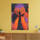 Achieve maximum style and ranking with this intense "Agony" expressionist canvas art. This premium, high-definition canvas print captures a moment of raw, overwhelming emotion, featuring a figure with hands covering the face in distress. The artwork explodes with a dynamic contrast of fiery orange against deep purple and violet, set off by a dramatic black background. The thick, visible impasto texture in the paint—a signature of the original oil painting—adds a striking, tactile depth, making it an exceptional textured emotional wall art piece.