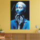 Este dibujo fue creado por #LeoPepeDesign, con ayuda de inteligencia artificial. Es adecuado para una línea de mobiliario creativa y audaz. La figura humana de esta imagen tiene la piel pintada de azul y mantiene sus manos cerca del cuello, creando una postura artística y elegante. El uso del color azul y la posición de las manos de la figura como elementos distintivos de la imagen que transmite una atmósfera artística e intensa.
