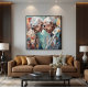 Esta pieza geométrica representa a una pareja mayor en un momento tierno, con triángulos coloridos en tonos suaves y vibrantes. Las formas entrelazadas simbolizan una unión duradera, mientras que los colores mezclados reflejan la profundidad de sus emociones y la belleza de una vida compartida.