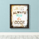 Una pintura mural de una cocina de tela envuelta tiene tipografía linda cita el humor de estilo rústico con besa el texto de la cocinera en tonos sepia y estilo de moda rústico marrón. Derechos de autor de arte Ann Powell