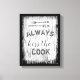 Una pintura en la pared de una cocina de lona envuelta tiene tipografía bonita cita el humor de estilo rústico con besos el texto de la cocina en tonos grises y el estilo rústico de moda de la frontera negra. Derechos de autor de arte Ann Powell