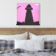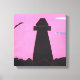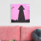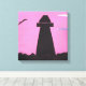 Este lienzo envuelto está diseñado con un faro de silueta contra un cielo de puesta de sol rosa.