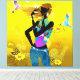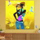 Devuélvanse los años 70 con este chica de silueta abstracta con brillantes flores de colibríes y remolinos Perfecto para oficina, hogar o vestíbulo. Se puede reducir fácilmente el tamaño -