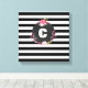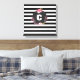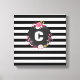 Esta impresión de lienzo envuelto de 12" x 12" tiene un patrón de rayas blancas y negras con un monograma floral en el centro. Puede personalizar este elemento agregando su nombre o inicial utilizando la plantilla.