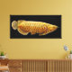 El pez arowana es un símbolo de suerte y prosperidad en algunas culturas asiáticas. Diseño original de arte fino de un pez Arowana por la artista Carolyn McFann de Two Purring Cats Studio impreso en un lienzo de calidad para los aficionados a los peces de acuario tropical.