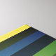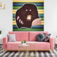 Dibujo lunar y rayas amarillas, verdes y azules. Decoración de arte mural fresco.
